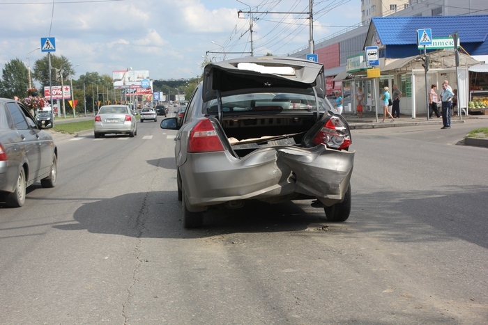 Одна из легковых останавилась перед светофором, а вторая въехала в нее.
