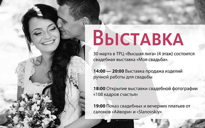 В ТРЦ «Высшая лига» состоится свадебная выставка «Моя свадьба»