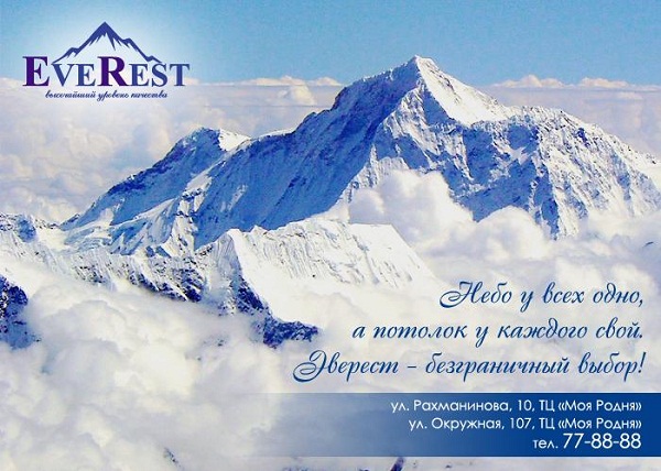 И еще – компания натяжных потолков EveRest каждого, кто воспользуется ее услугами, награждает подарочным сертификатом, который дает право при последующем заказе воспользоваться скидкой в размере 10 процентов. Сертификат можно передавать близким, дарить друзьям и использовать неограниченное количество раз, правда, действителен он будет до 2015 года!