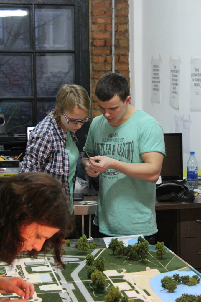 #Про команду. Мы работаем большой командой. Все начинается с архитектора, который чертит фасады будущего здания. Чтобы изготовить макет, мы покупаем специальные детальки в Германии: человечки, машинки, деревья. Но не все можно купить, кое-что приходится изготавливать вручную. Например, световые столбы наш инженер делает из канцелярских скрепок. Подсветку для макетов делает дизайнер Настя. Мы очень гордимся тем, что она девушка, а при этом отлично разбирается в электрике! Также нам помогают студенты, которые учатся у нас тонкостям профессии.