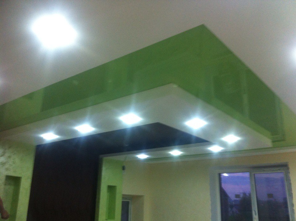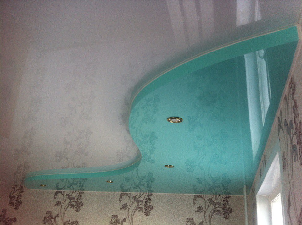 - глянцевые полотна из ПВХ - отлично подойдут для любого помещения. Глянцевые потолки могут быть самых различных цветов. Отлично смотрятся двухуровневые глянцевые потолки с подсветкой.