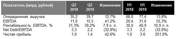 - Во II квартале 2019 года компания достигла следующих основных финансовых показателей: