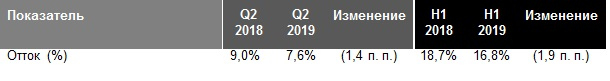 - · Квартальный отток оператора составил 7,6%, демонстрируя улучшение показателя относительно аналогичного периода прошлого года;