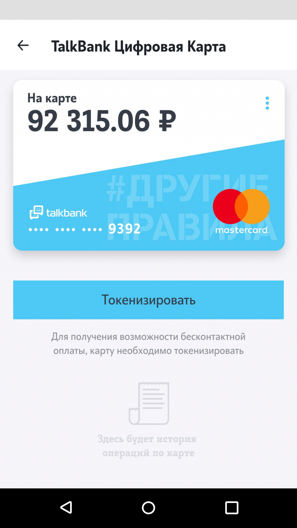 *Токенизация – это процесс замены основного 16-значного номера пластиковой карты (PAN) на уникальный альтернативный номер карты или «жетон». Токены могут использоваться для проведения транзакций с мобильных точек оплат, покупок через приложения или онлайн. Подробнее о токенизации на сайте Mastercard.