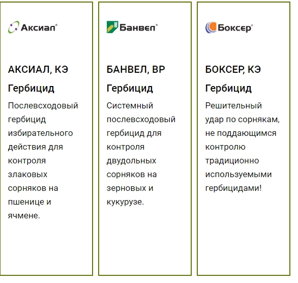 - АКСИАЛ, ДЕРБИ – защищают от сорняков пшеницу и ячмень;
