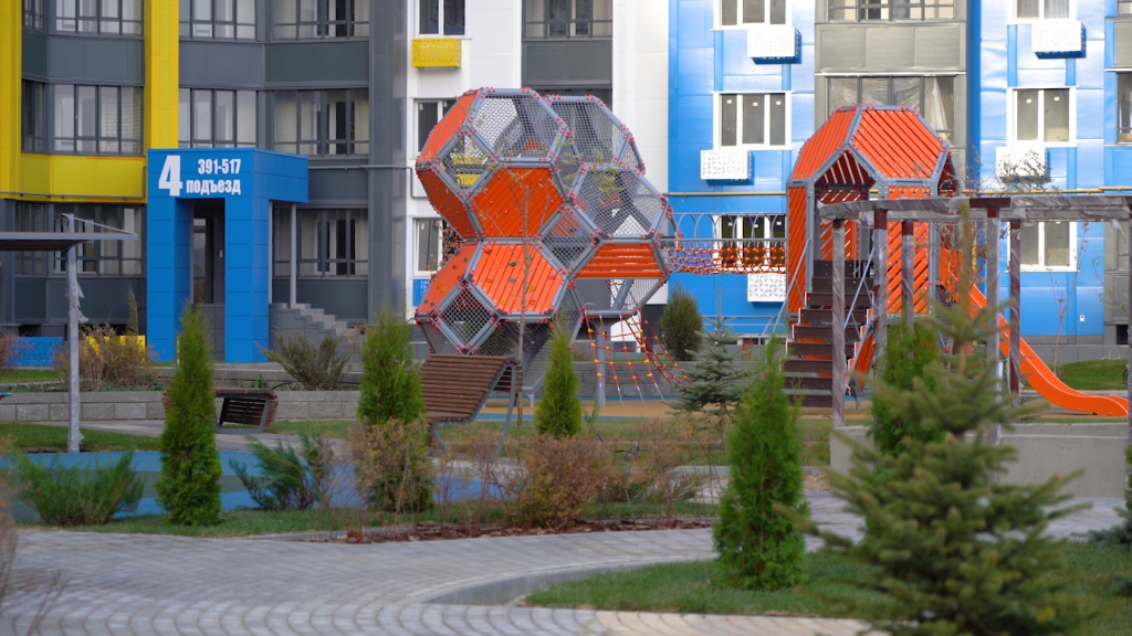 «На примере строения 72 можно увидеть, какие сейчас мы проектируем дворы жилых комплексов Спутника. Они большие, благоустроенные, закрытые от машин, интересные и взрослым, и детям. Здесь большое количество игровых площадок для детей разного возраста. Причем мы изучаем новинки специализированных заводов, поэтому, например, в Спутнике, в частности в квартале «Радужные дворы» есть игровые элементы, которые еще нигде не ставили в России», — рассказала Виктория Мазявкина.