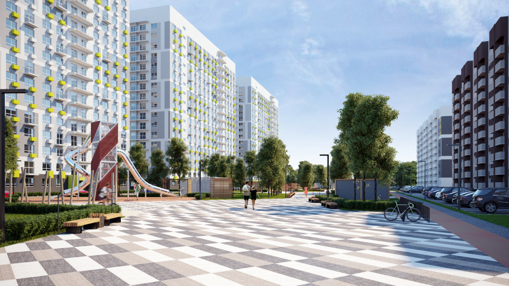 На прилегающей территории - огороженные детские игровые площадки для каждой группы. Родители могут быть уверены в безопасности детей. Рядом со зданием будет располагаться пешеходная аллея - комфортное место для прогулок с современным ландшафтным дизайном. Это тихая и широкая улица, где удобно гулять с коляской, пешеходный бульвар, который станет центром притяжения. По всей его длине в 750 метров будут расположены интересные зоны для всей семьи: воркаут-площадка, перголы с лавочками, спортивная зона для детей. Покрытие бульвара подходит для катания на роликах и скейте.