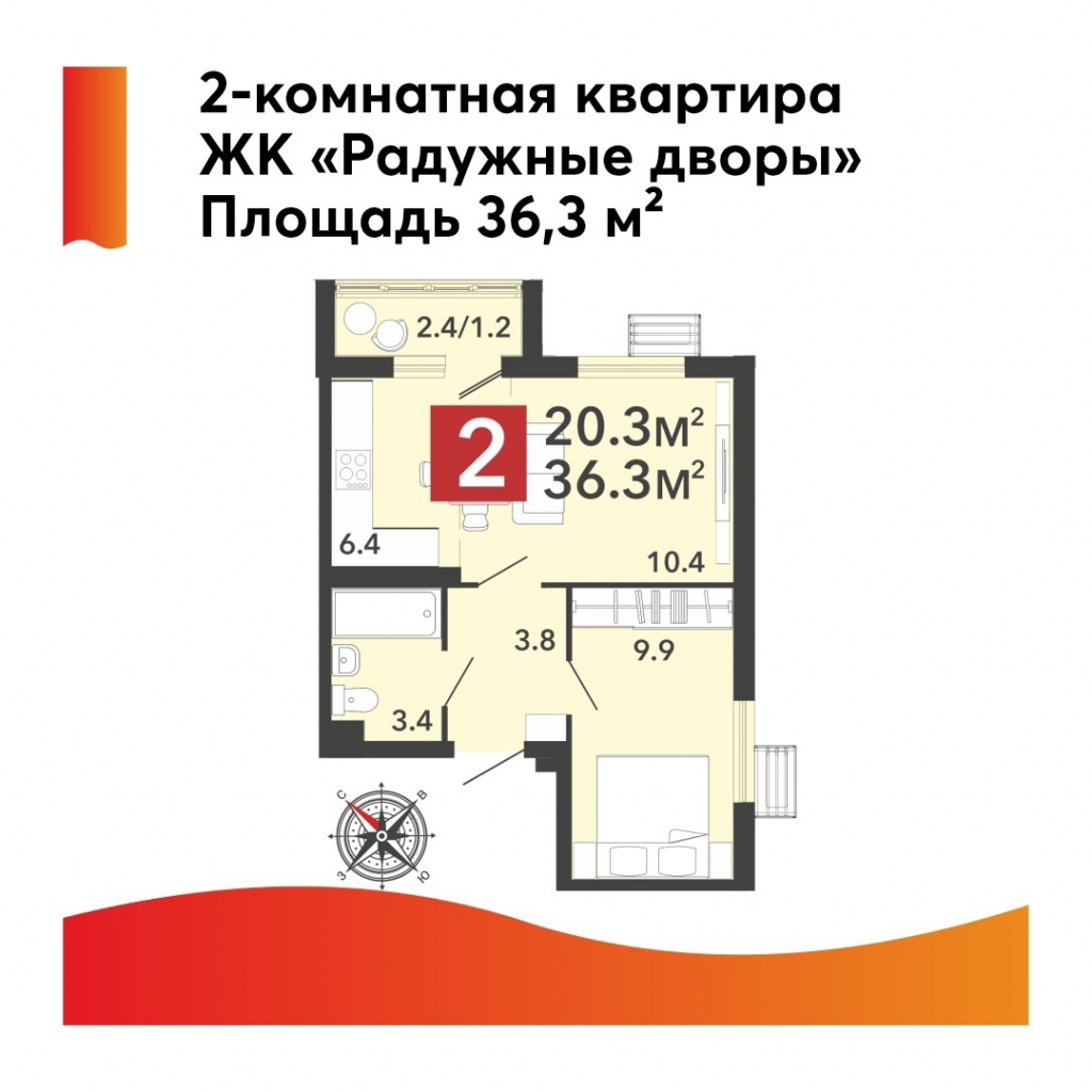 На планировке 2-комнатная квартира в «Радужных дворах».