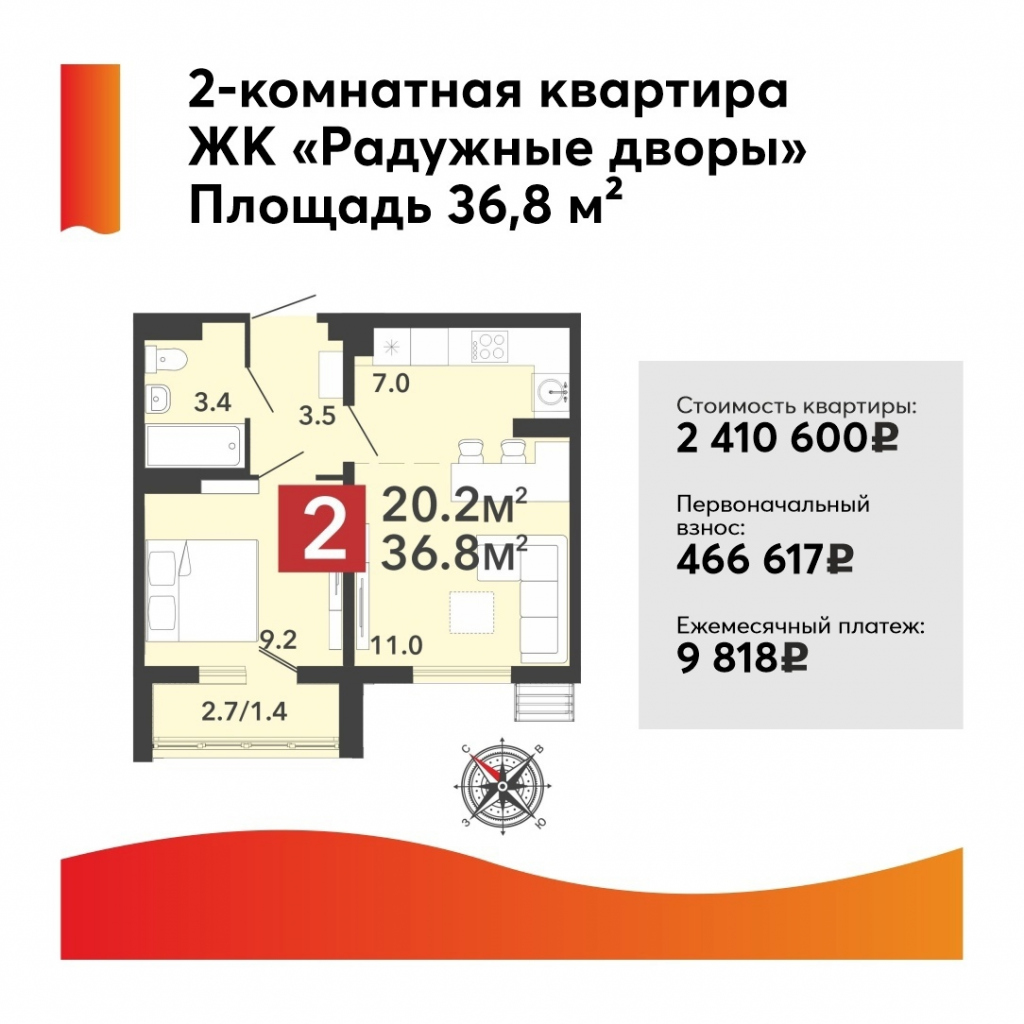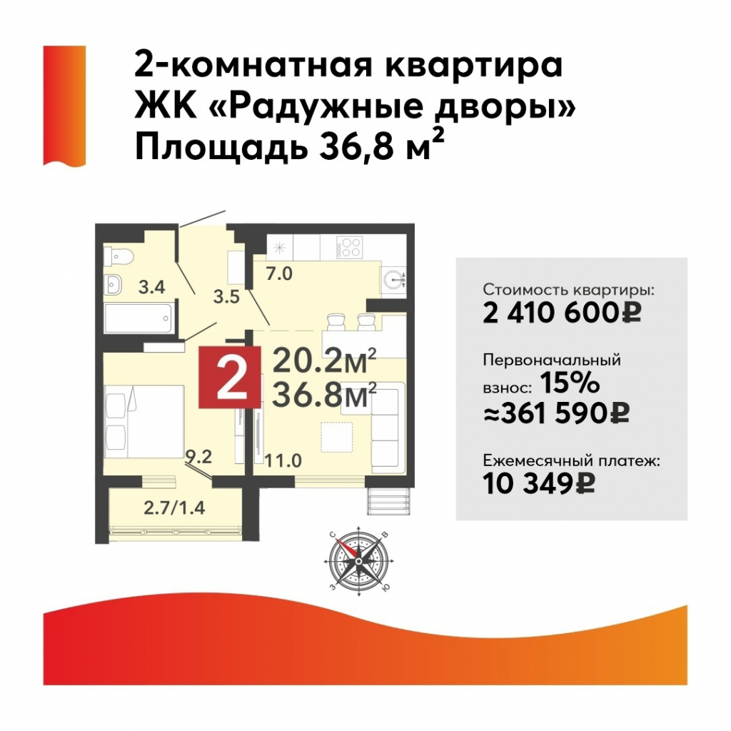 Площадь – 36,8 кв. м