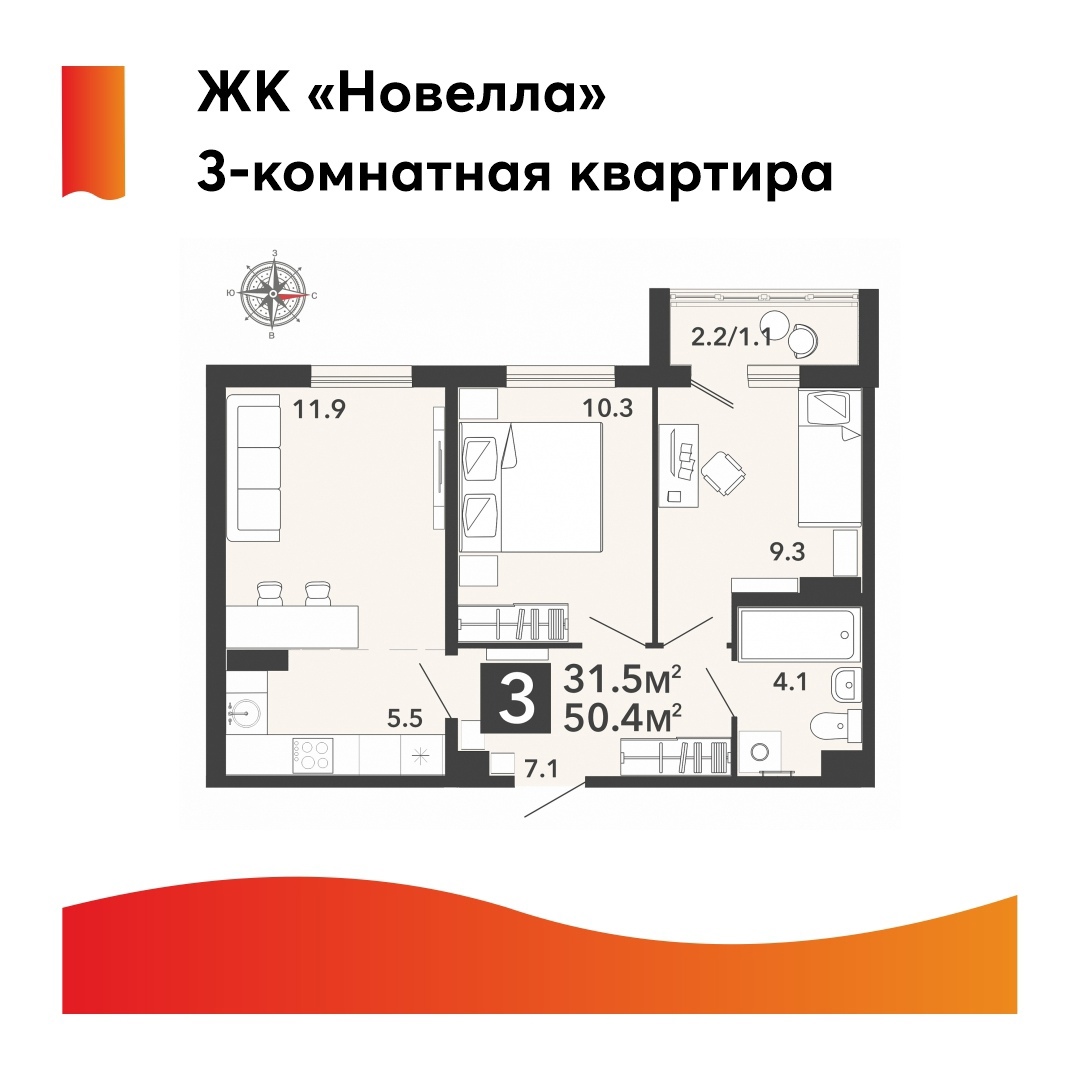 Давайте посмотрим на две 3-комнатные евроформата в пензенском ЖК «Новелла» на ул. Шмидта (3-й этап).
