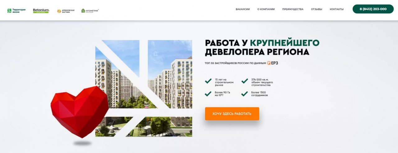 ГК “Территория жизни” - динамичная, современная компания, работать в которой - престижно. Развивая технологии и кадровый потенциал, компания вносит вклад в будущее города и региона.