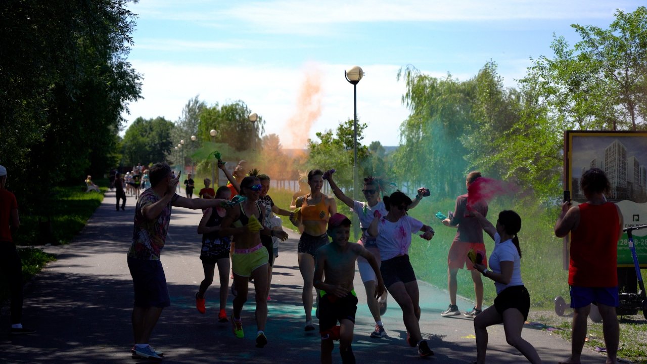 Яркие 3 километра пробежали в субботу, 25 июня, участники первого красочного забега в Городе Спутнике. Взрослые и дети, обсыпав друг друга краской, в легком темпе преодолели один круг тропы здоровья.