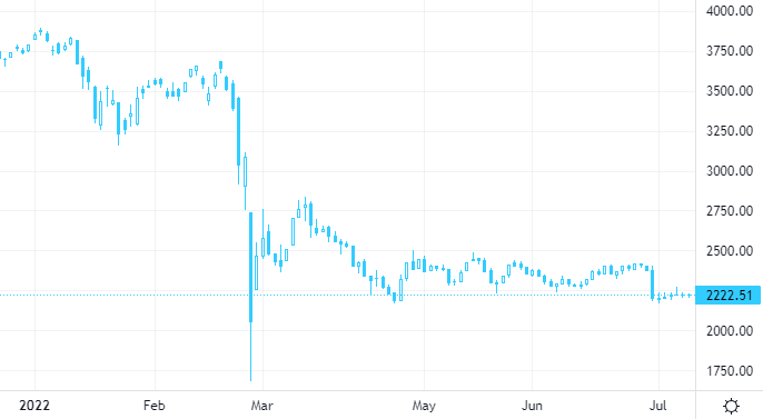 · За прошлую неделю индекс МосБиржи вырос с 2206,61 п. до 2222,51 п., а индекс РТС снизился с 1276,55 п. до 1144,79 п. Пара EUR-USD снизилась с $1,0414 до $1,0185. USD/RUB вырос с 54,50 до 60,92, а EUR/RUB — с 56,54 до 62,35. Нефть Brent подешевела со $111,63 за баррель до $107,02. Золото на Comex подешевело с $1801,50 до $1742,30 за тройскую унцию. Резервы SPDR Gold Trust сократились с 1041,90 тонн до 1023,27 тонн. Американский индекс широкого рынка S&P 500 вырос с 3825,33 п. до 3899,38 п.