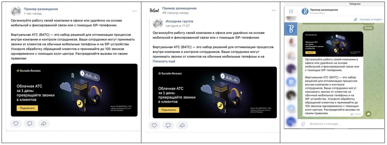 билайн adtech – подразделение по рекламным технологиям билайн бизнес – обеспечил для бизнеса возможность размещения постов и репостов в социальных сетях через платформу билайн.ПРОдвижение. Публикация постов возможна в Telegram, ВКонтакте и Одноклассниках. В сервис интегрирована регистрация в ОРД. Минимальный бюджет кампании – от 10 тыс. рублей с НДС. Для тарификации услуг применяется модель оплаты за показы.