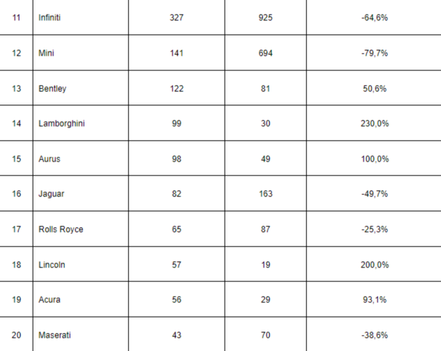 Топ-20 премиальных и люксовых марок по итогам продаж октября 2023 года