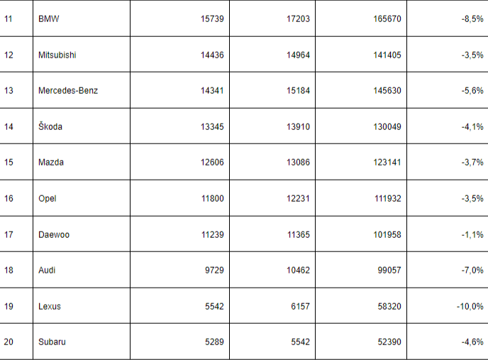 На второй и третьей ступеньках пьедестала популярности среди марок остались Toyota (60 055 сделок, - 4,2%) и Kia (32 625 сделок, - 4,8%). Японских и корейских автомобилей этих брендов по-прежнему очень много на рынке. Именно они, несмотря на прекращение официальных поставок, продолжают входить в топ-10 популярных и среди новых машин. Поэтому Toyota и Kia наверняка сохранят свои места в рейтинге вторичного рынка не только в текущем, но и в 2024 году. В целом незыблемом топ-20 марок в октябре наибольшую отрицательную динамику продемонстрировали подержанные Lexus и BMW – на 9-10% относительно сентября. В свою очередь объемы продаж иномарок, которые играют в наиболее бюджетных сегментах (Chevrolet и Daewoo), практически не меняются.