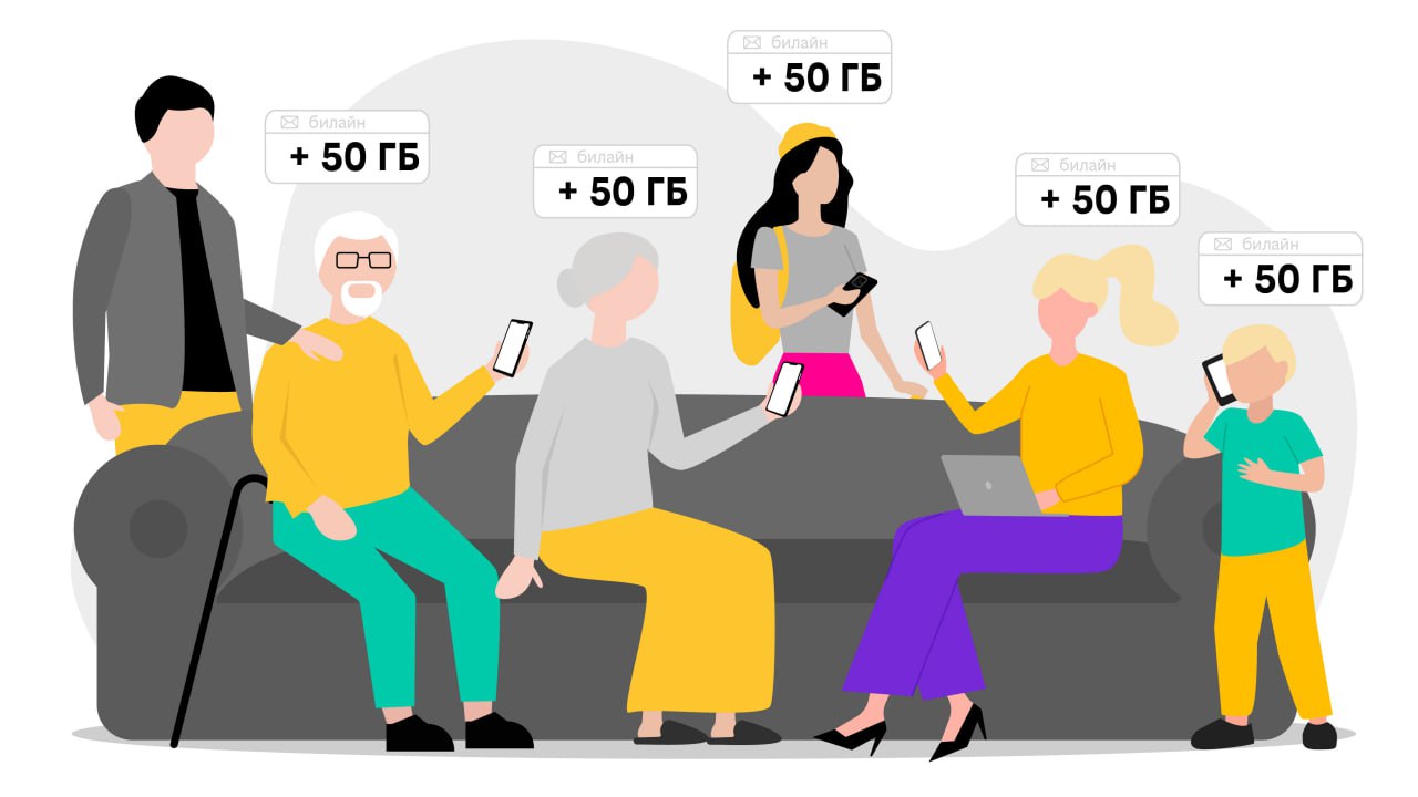 Объединяйте близких в билайне и получайте +50 ГБ за каждый новый номер ежемесячно