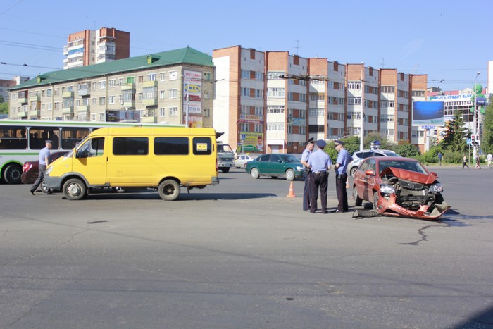 Сегодня утром, примерно в 7:50 на перекрестке улиц Кулакова и Суворова произошла авария. Столкнулись три автомобиля: Kia Rio, Lada Granta и маршрутное такси ГАЗель.