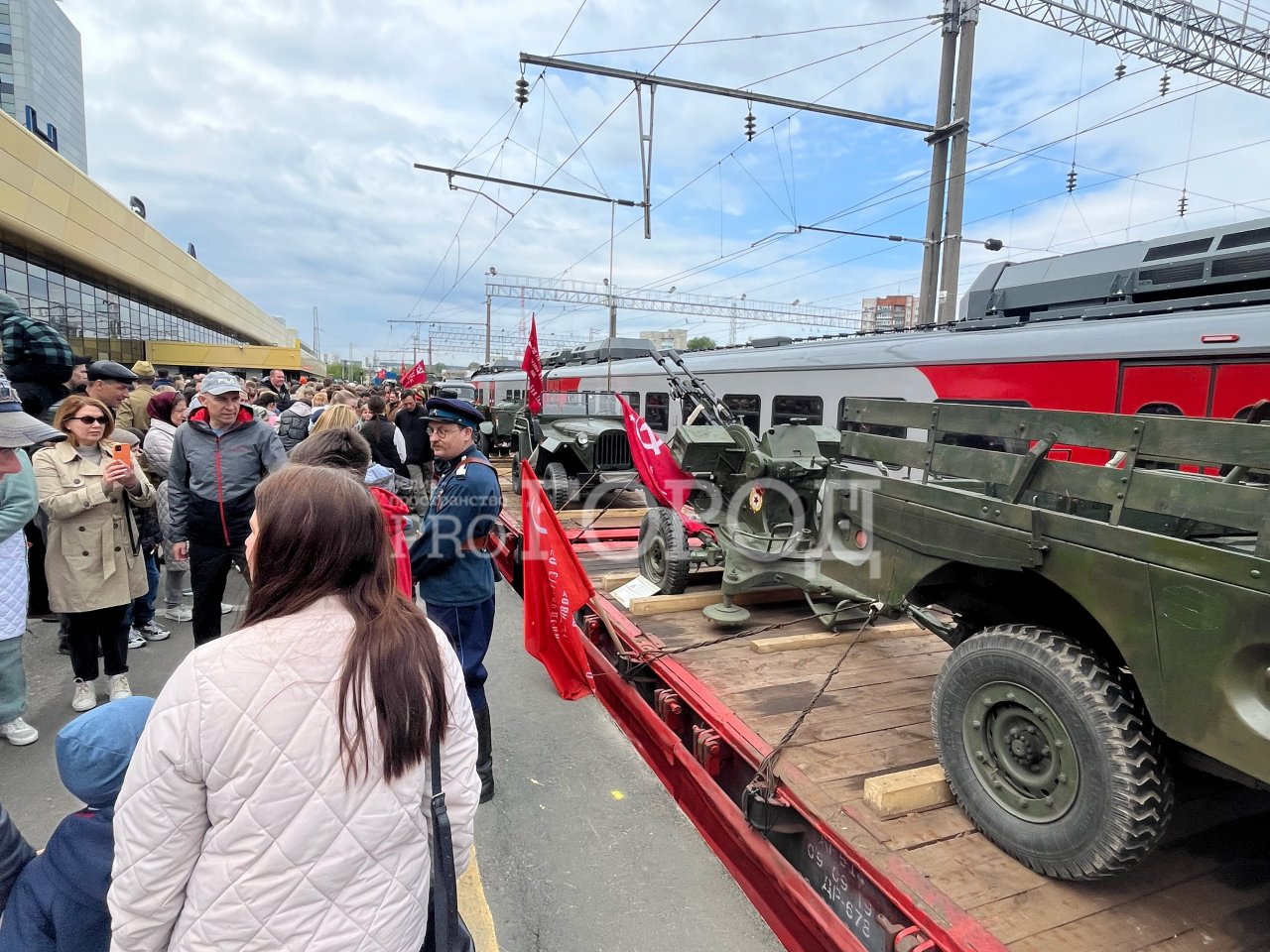 На перроне его встречали сотни семей. Паровоз приехал на железнодорожный вокзал станции Пензы-1. В ретросостав вошли легендарный паровоз «Лебедянка», пассажирские вагоны «Бессмертного полка» и платформы с военной техникой.