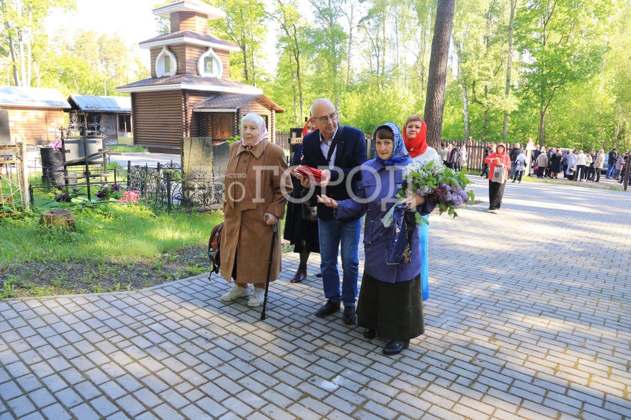 Утро 9 мая в Ахунах началось с панихиды настоятеля храма Николая Чудотворца отца Владимира Скоробогатова. Она состоялась у мемориала «Скорбящая мать» на Ахунском кладбище и братской могилы бойцов, погибших от ран в эвакогоспитале №2772. Известно, что эвакогоспиталь стал ведущим эвакуационным пунктом, принимая раненых с разных фронтов.