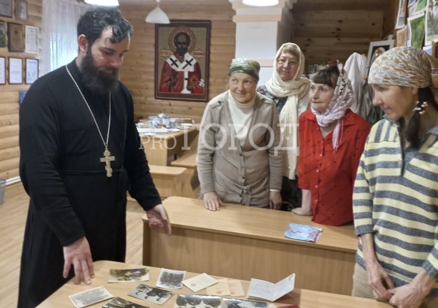Последней точкой маршрута стала остановка в центре краеведения – библиотеке при храме, где с порога гостей встретила выставка «Реликвии эпохи Великой Отечественной войны».