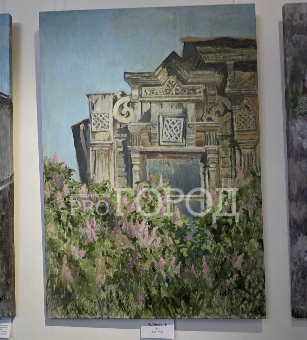 Художник представила близкие всем по духу картины. Среди них сельские пейзажи. Этим работам посетители дали название «Исчезающая красота». На полотнах - остатки резных (кружевных) деревянных домиков. Пройти мимо этих полотен было невозможно.