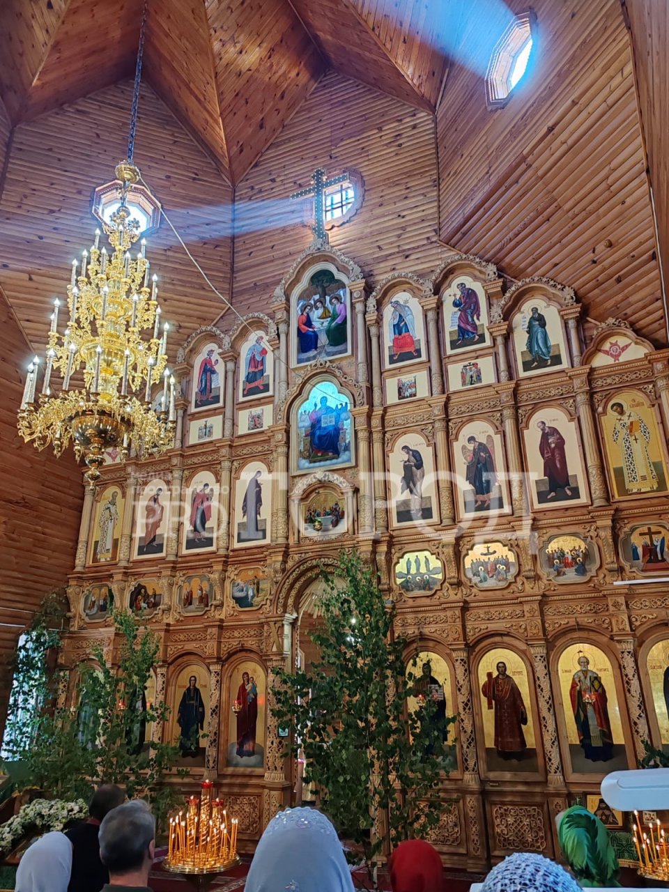 Вид образов в цветочной раме, бодрящий запах травяной. На Троицу собрался в храме