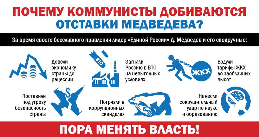 Опубликованы 10 основных причин проводить Медведева и его министров в отпуск (по мнению коммунистов).