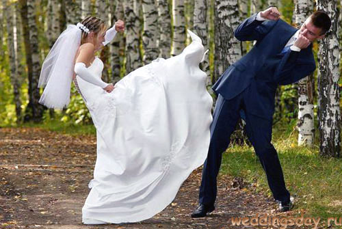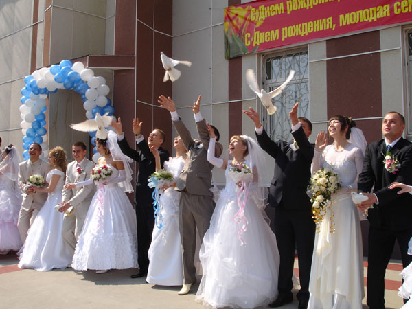 Беспощадный свадебный конвейер чешет всех под одну гребенку. Не успеете оглянуться, как вы — муж и жена. Вдобавок вас ограничат в парковке, количестве человек на росписи, времени и действиях. Остается лишь поддаться работникам ЗАГСа и выпустить в небо голубей, которым еще после вас раз 20 в этот день взлетать и садиться.