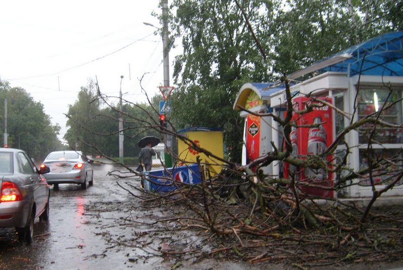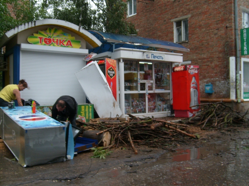 Вчера ночью, 2 августа, на улице Попова, на торговый павильон, упало дерево, около которого стояли холодильники с товаром.