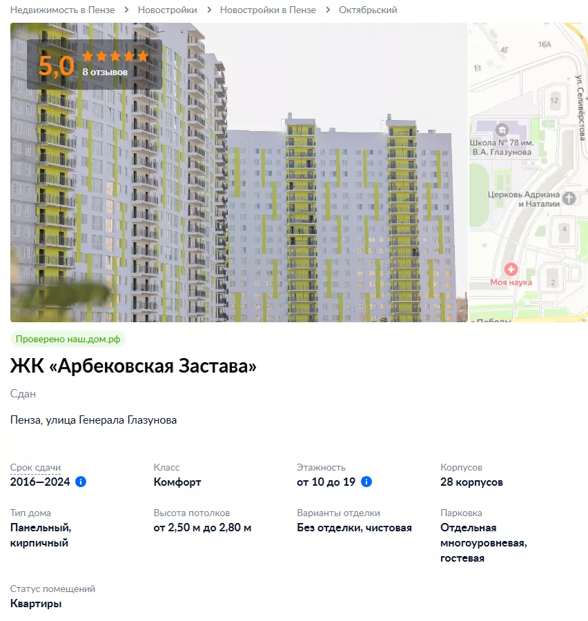 В подборке указаны цены за квадратный метр на квартиры с предчистовой отделкой в новостройках Арбеково: