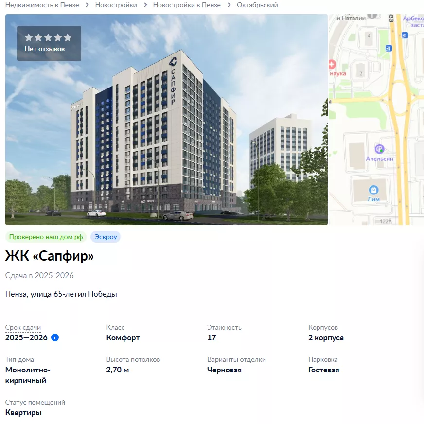 3. Жилой комплекс «Сапфир». Цены не указаны.