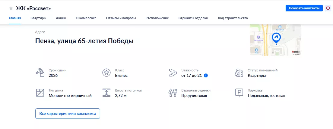5. Жилой комплекс «Рассвет». Диапазон - от 99 800 ₽/м².