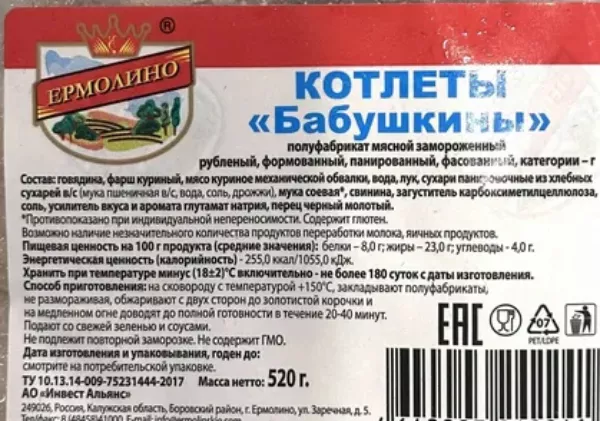 Полуфабрикаты — палочка-выручалочка для любой хозяйки. Быстро, сытно и не надо возиться с фаршем. Но иногда даже хороший вкус оборачивается разочарованием, если заранее не прочитать состав. Изучили отзыв одной из покупательниц о котлетах «Бабушкины» от бренда «Ермолино». И вот почему изучать этикетку нужно ещё в магазине.