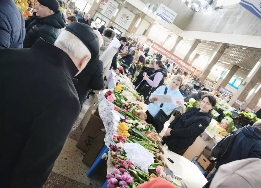 Глаза разбегаются! В Пензе мужчины штурмуют Центральный рынок, чтобы подарить любимым весну к 8 Марта