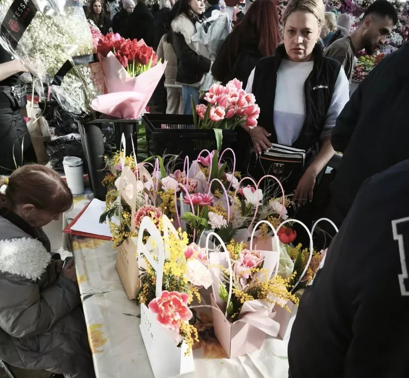 За день до главного женского праздника Центральный рынок превратился в настоящий цветочный фронт. На входе - пробки из машин и мужских силуэтов. Кто-то приехал на такси, кто-то припарковался за три квартала и бежит с пустыми руками, чтобы уйти с огромным букетом. Что творилось сегодня на рынке в преддверии 8 Марта - в нашем материале.