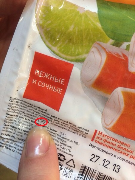 К примеру, в отделе кисломолочных продуктах для детей практически нет товара с этими добавками. В обычных кефирах и молоке, срок годности, которых не более 7 дней, мы их тоже не нашли. Также в большинстве предложенных консервов из рыбы, да и просто в слабосоленой рыбе в упаковке их тоже не было.