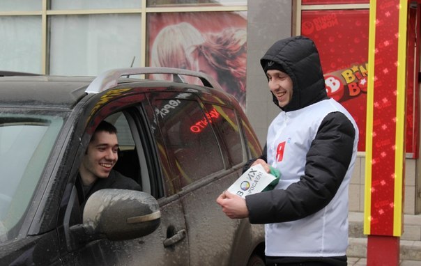 Такие же наклейки молодогвардейцы раздавали простым водителям легкового транспорта на перекрёстке улиц Московской и Максима Горького.