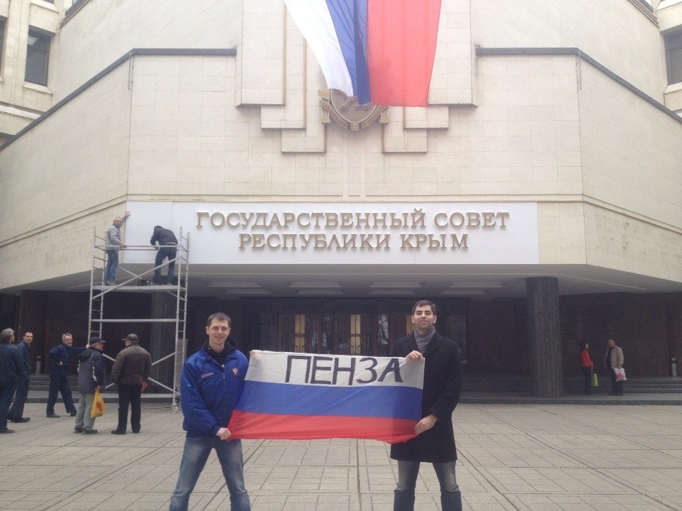 Пензенец Михаил Лисин побывал в штабе "Беркута" и передал командиру подразделения пензенский вымпел. Напомним, портал vPenze.ru уже рассказывал о пензенце, попавшем в гущу событий, связанных с референдумом в Крыме. Михаил Лисин рассказывал о реакции местного населения на присоединение Крыма к России. Именно он держал российский флаг с надписью "Пенза", который в итоге увидела вся страна на трансляции с концерта, посвященному референдуму. Михаил поехал в Крым, чтобы поддержать местное население в момент события исторической важности не только для крымчан, но и для всей России.
