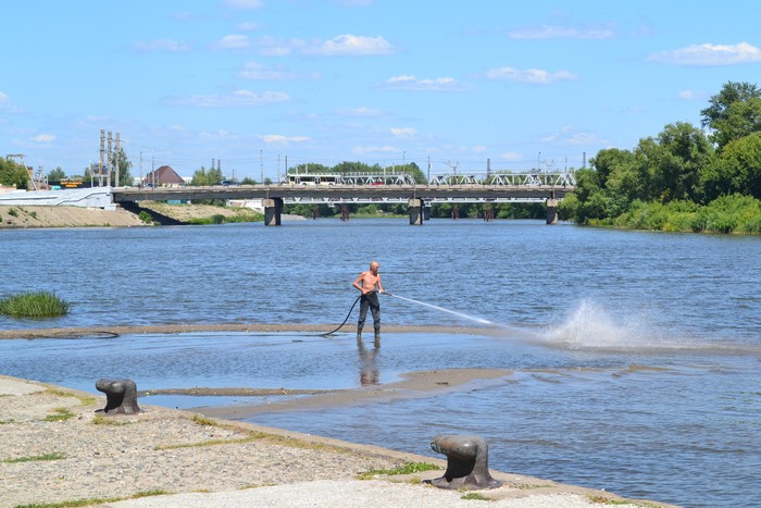 А вот на берегу Суры работа идет активная. Специалисты МУП «Пензадормост» занимаются размывом насыпи, образовавшейся за зиму.