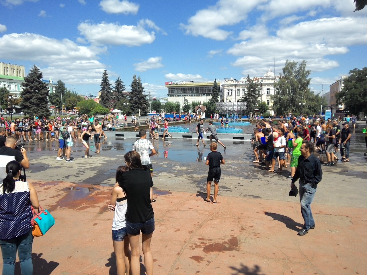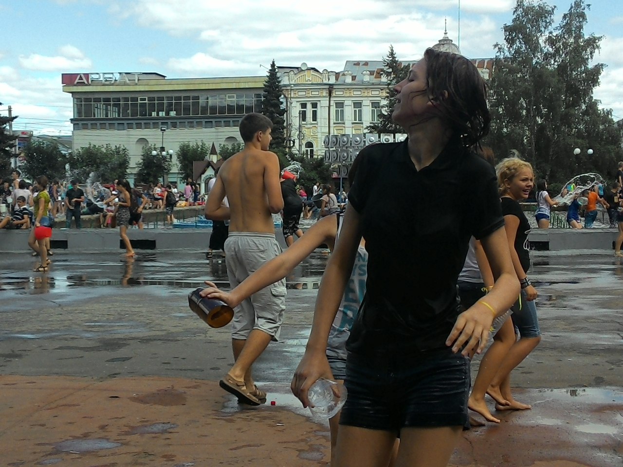 Сегодня, в 12 часов дня, молодежь Пензы в очередной раз устроила мокрые бои на Фонтанной площади.