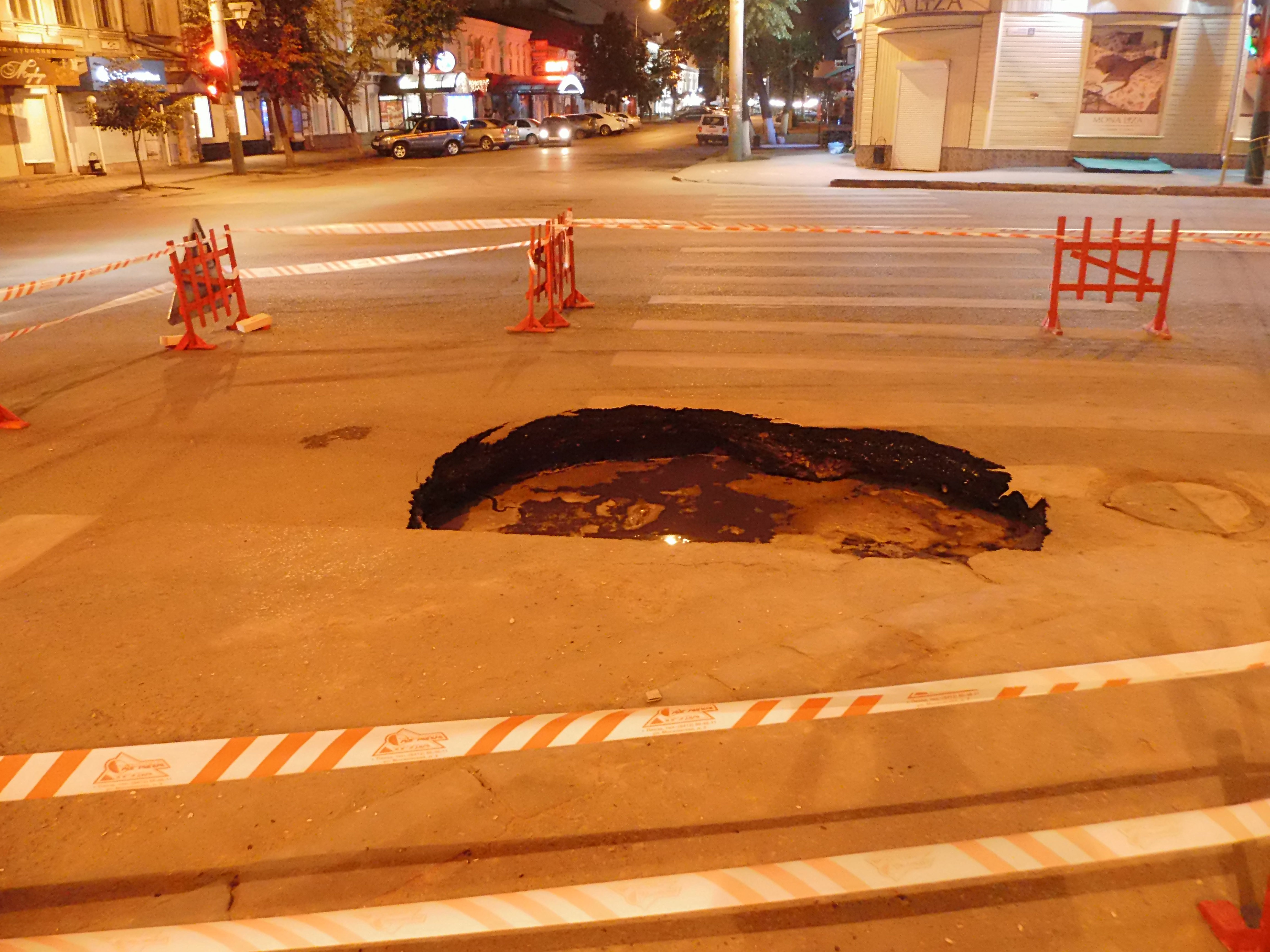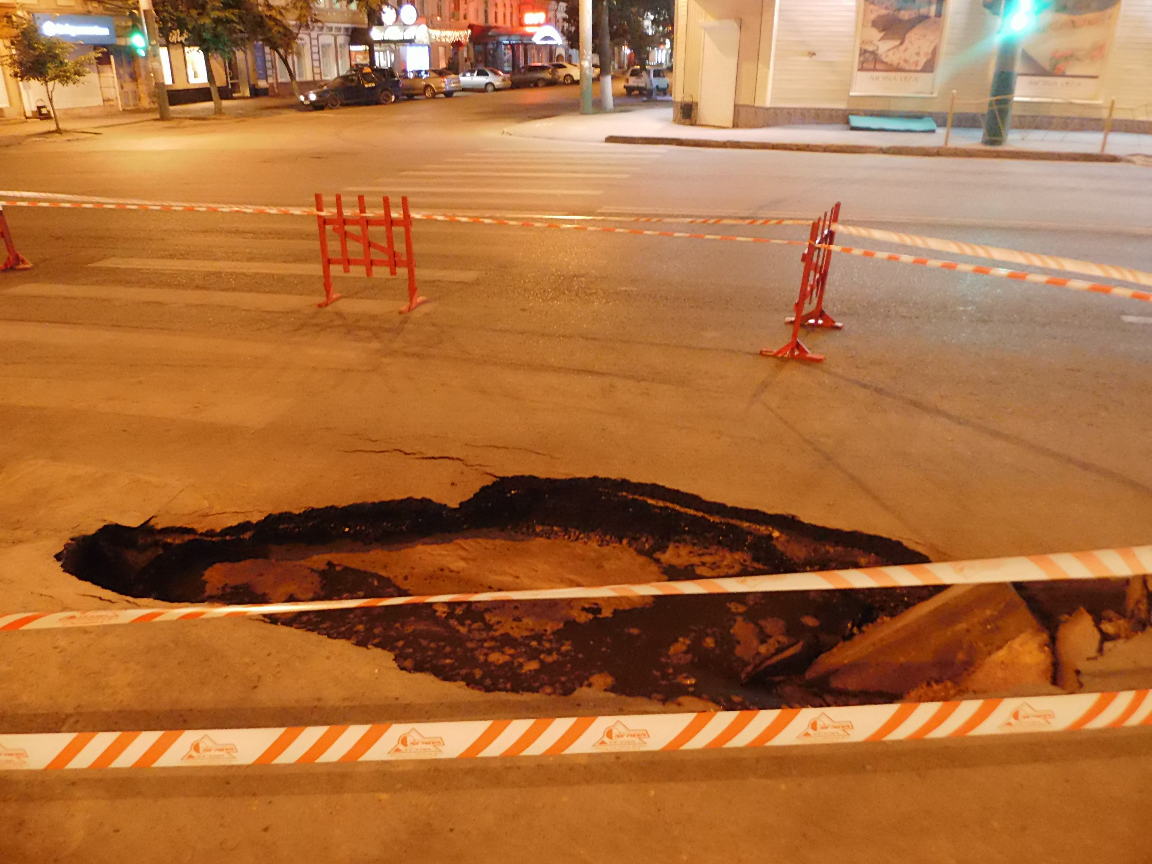 На перекрёстке улиц Суворова и Московская снова провалился асфальт (фото)