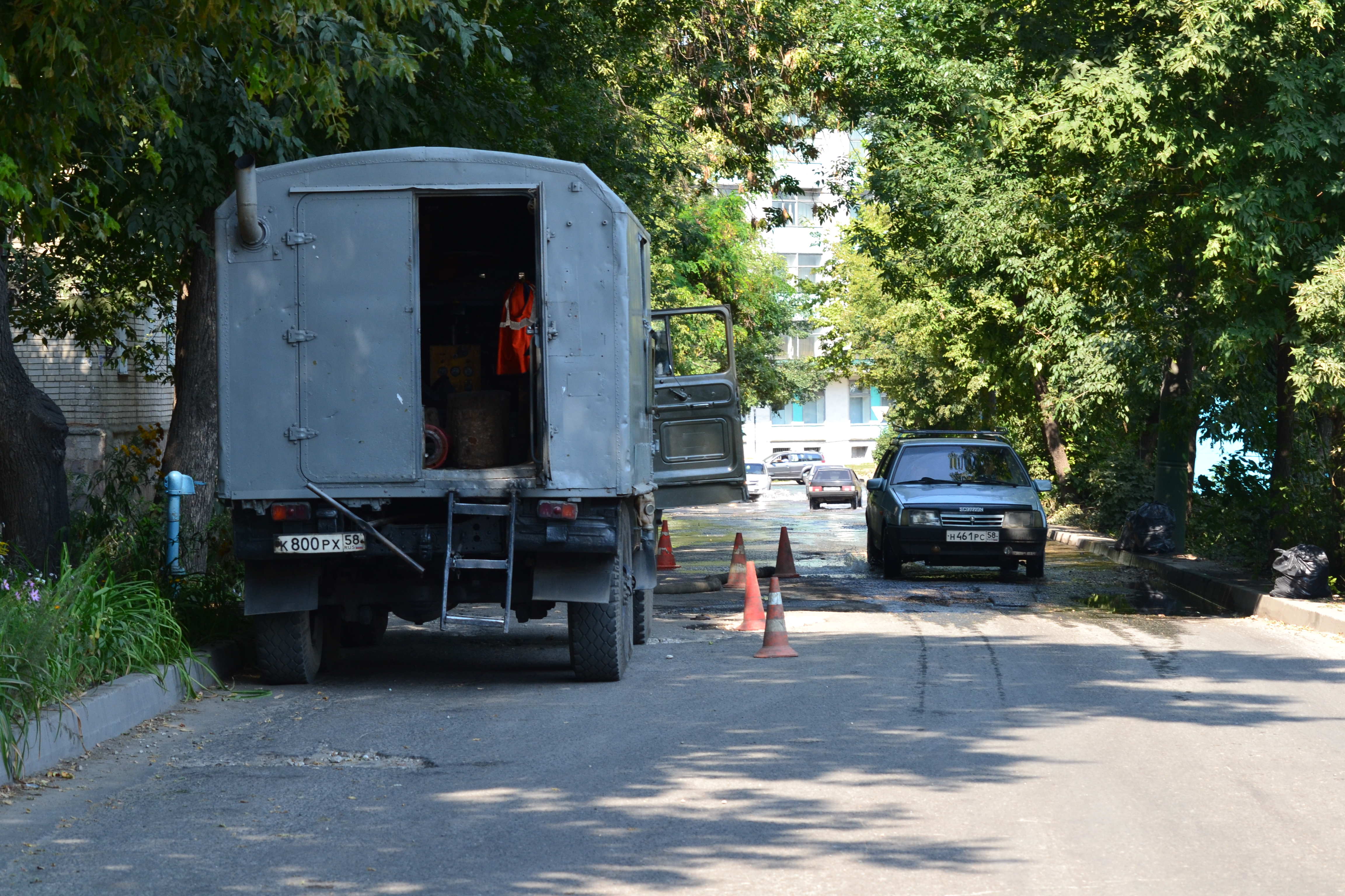 На месте происшествия работали сотрудники горводоканала. В итоге оказалось, что в этом месте проходят плановые работы по проверке пожарных гидрантов.
