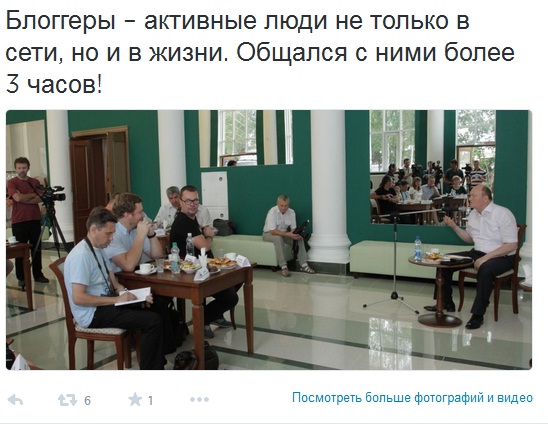 Кстати, в своем микроблоге губернатор также отметил активность блоггеров, встреча с которыми состоялась также 7 августа.
