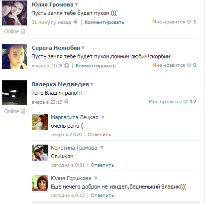 Странички погибших в социальных сетях переполнены различными сообщениями от друзей погибших, которые скорбят об утрате.