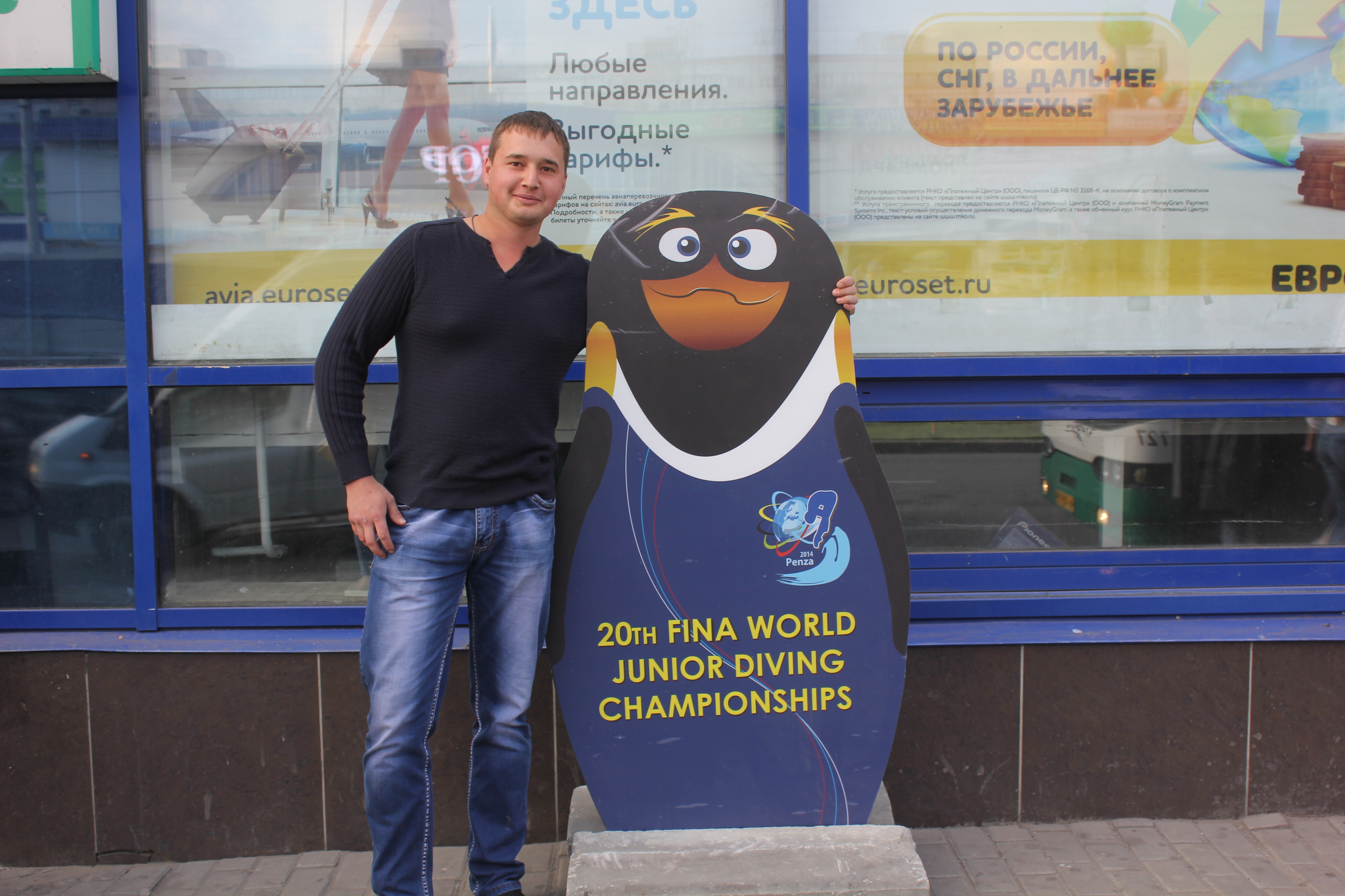 В нескольких пензенских торговых центрах в предверии масштабных соревнований появились ростовые фигуры пингвиненка - символа юниорского Первенства мира по прыжкам в воду.