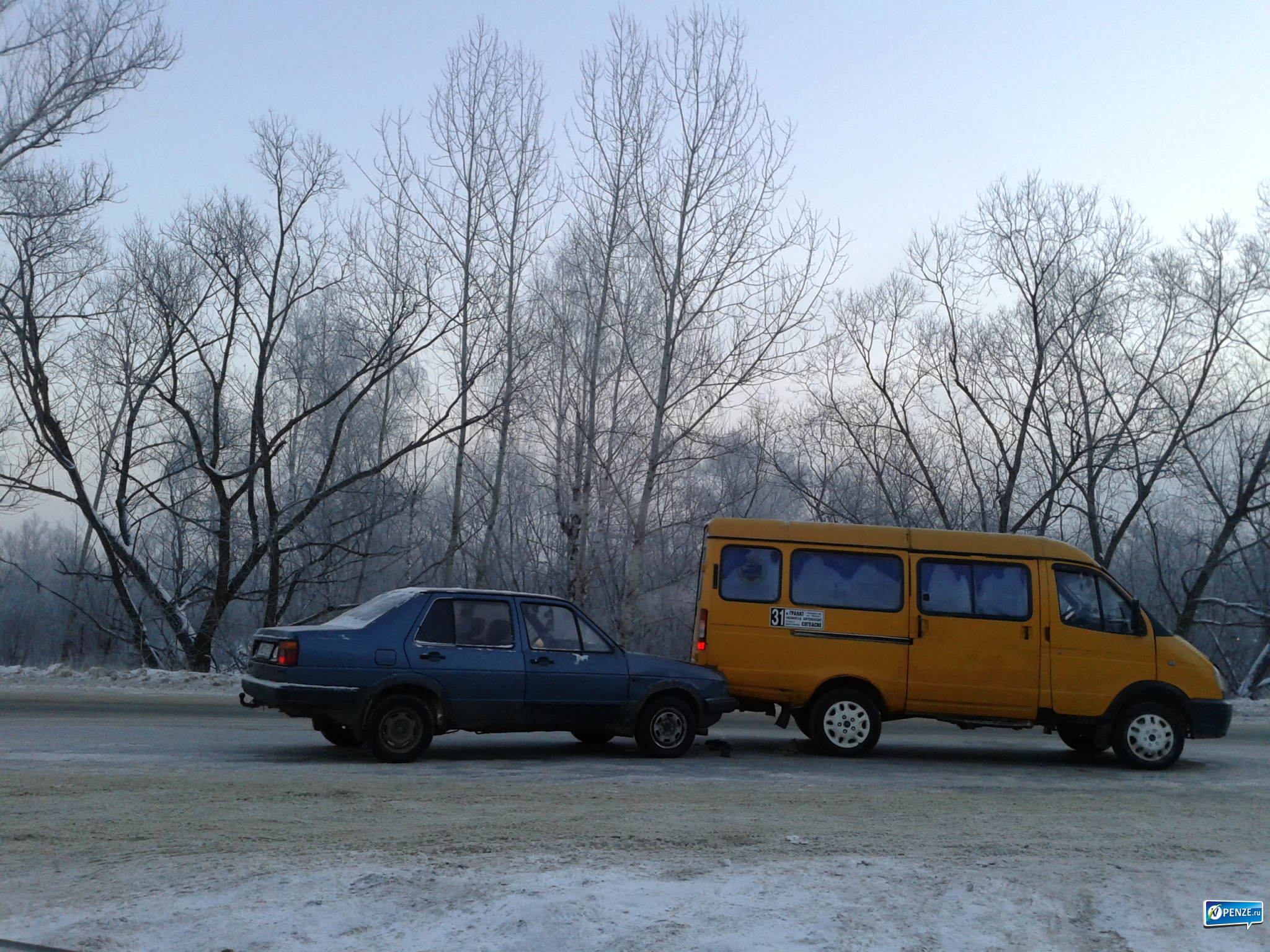Вчера утром на улице Светлой произошла авария. На конечной остановке легковушка врезалась в пассажирскую маршрутку №31.