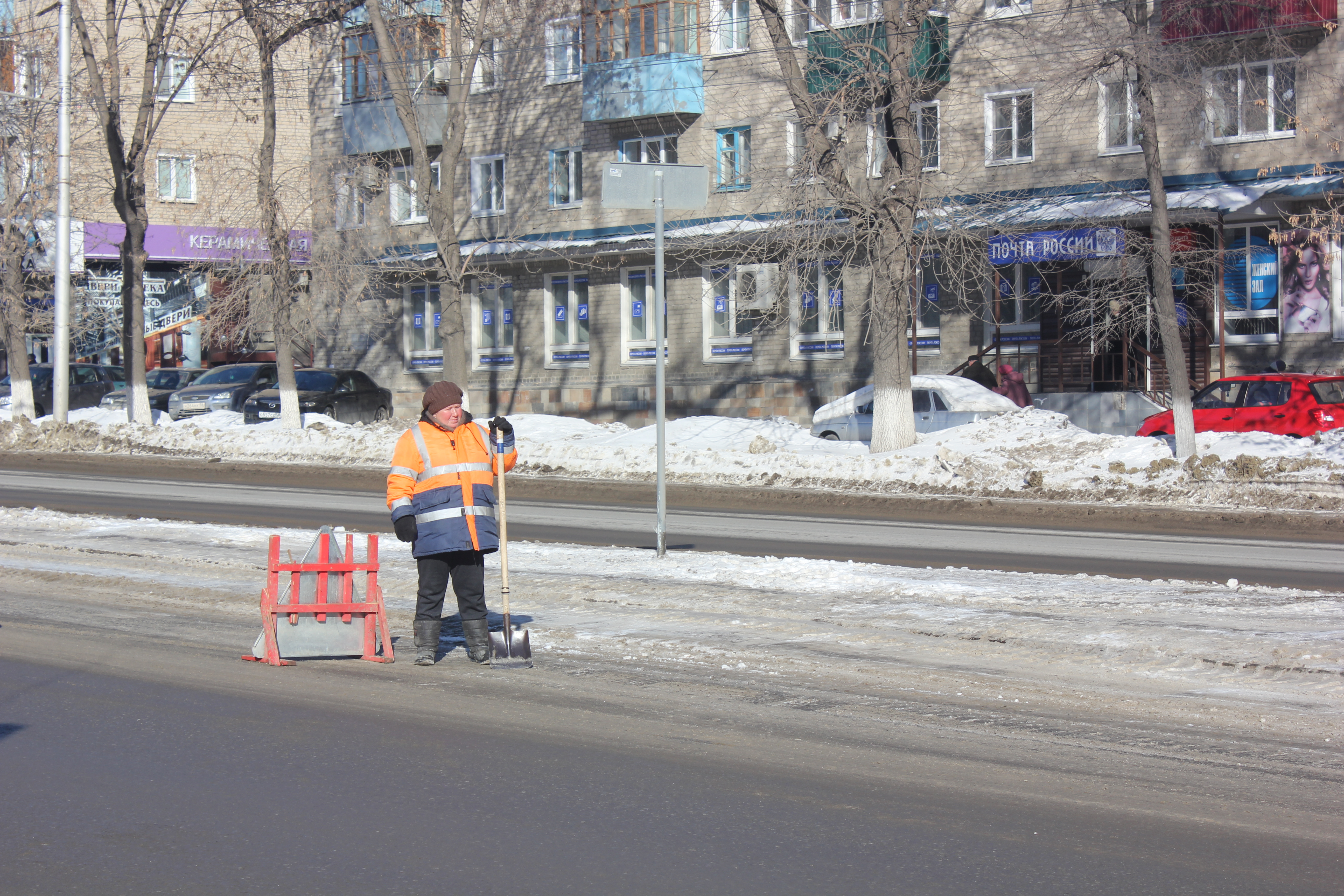 Пенза сегодня начала подготовку к 23 февраля: десятки рабочих вышли на проспект Победы для уборки снега и наледи.