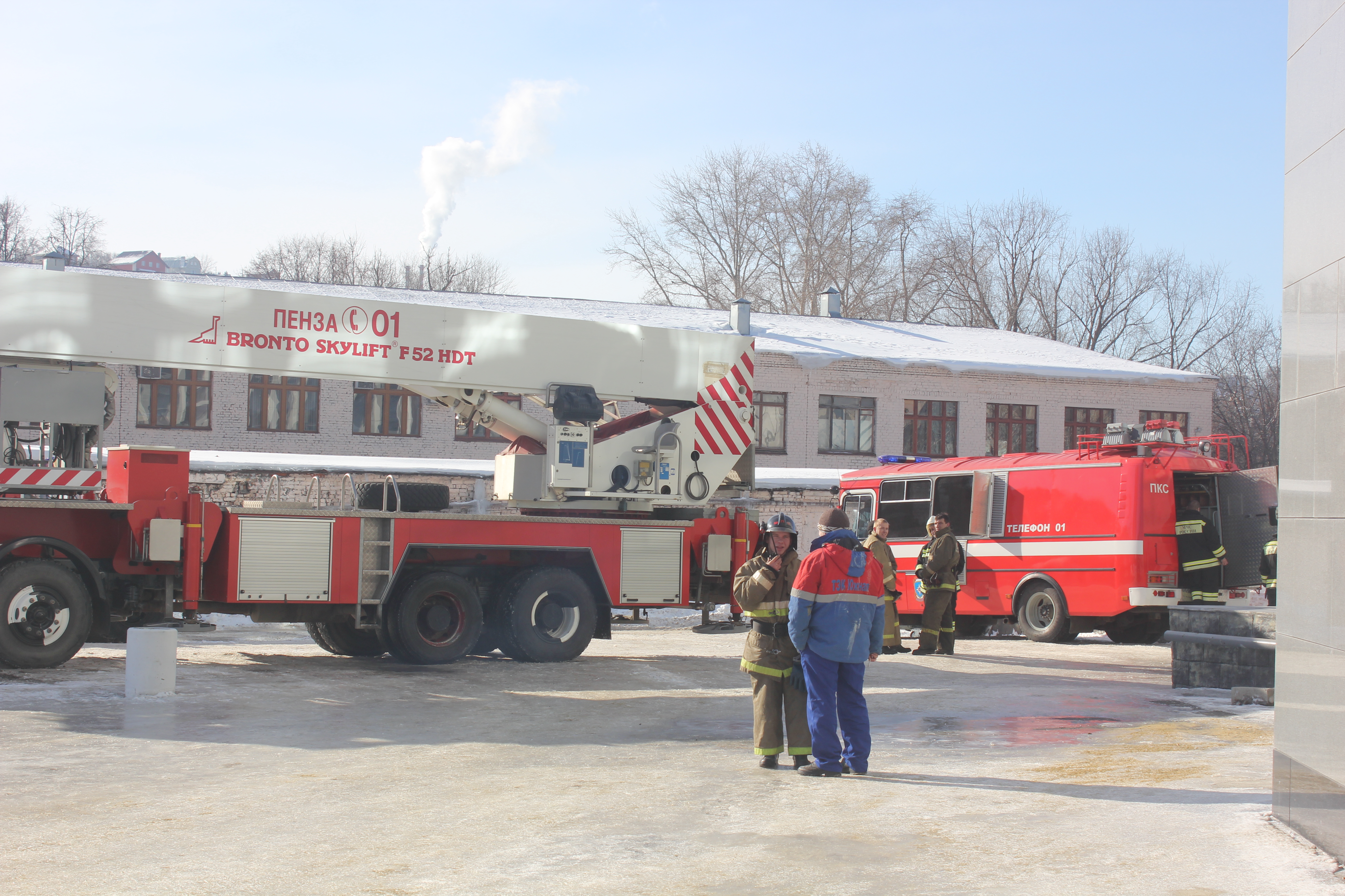 К моменту приезда журналиста, учения уже закончились. Один из пожарных рассказал, что все начальство отбыло в ККЗ "Пенза", чтобы подвести итоги. Молодой человек также сказал, что была задействована спецтехника для того, чтобы достать людей с большой высоты. Вместо живых людей, использовались манекены.