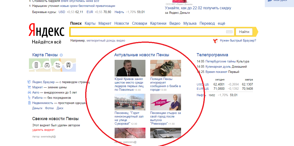 Портал vPenze.ru обзавелся новостным виджетом на Yandex